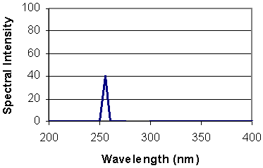 Figure 3 : Manufacturers data from two different UV lamps (theoretical) A filter based radiometer with the filter illustrated in figure 2 will give a reading of 40W/cm2 for both source A and B, leading you to believe that source B is the same as source A. Solatell based instruments will give the exact wavelength and intensity as expected from the manufacturers data. One can then see that the lamps are different.